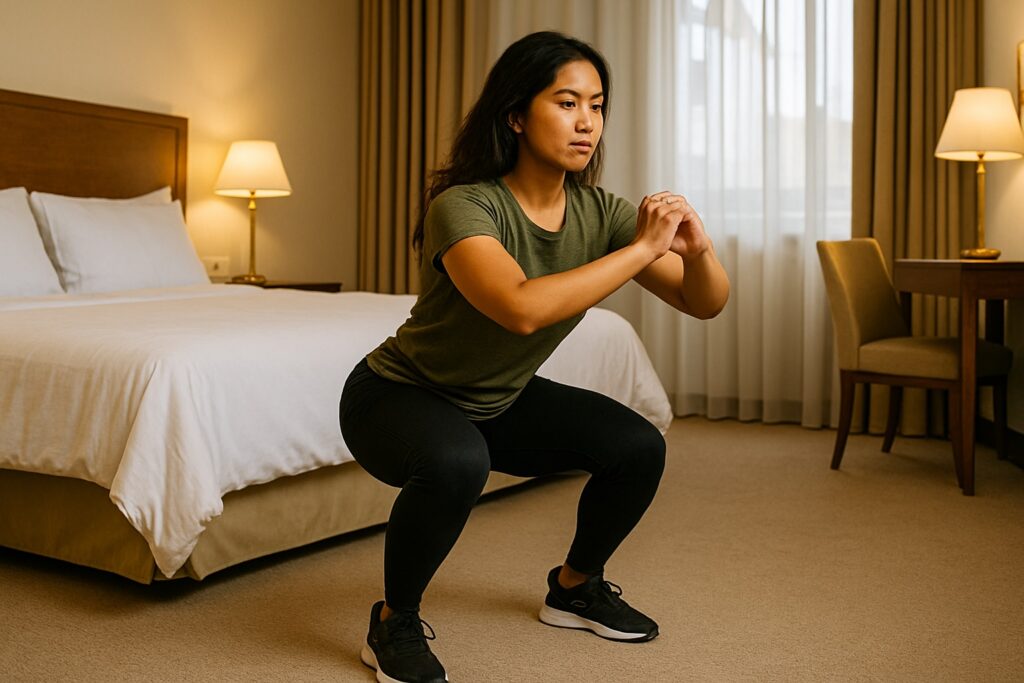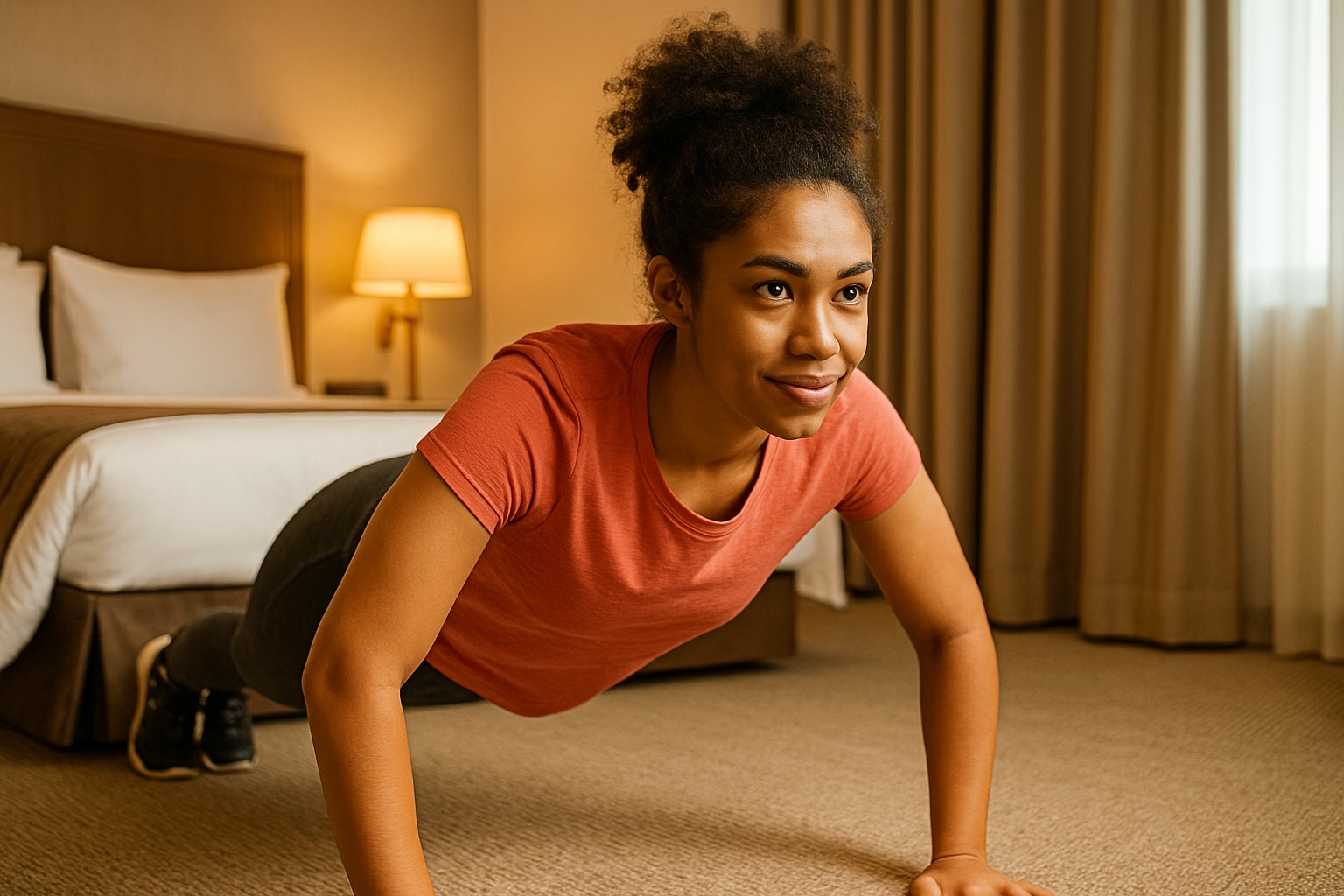 Discover the best bodyweight exercises for staying fit in hotel rooms.