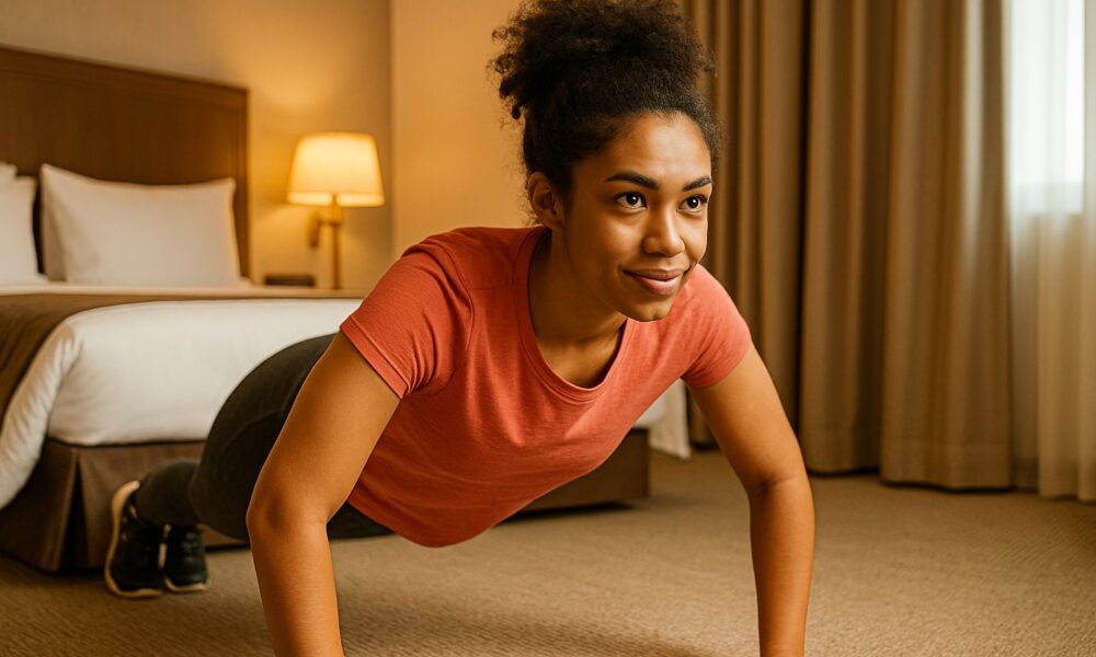 Discover the best bodyweight exercises for staying fit in hotel rooms.